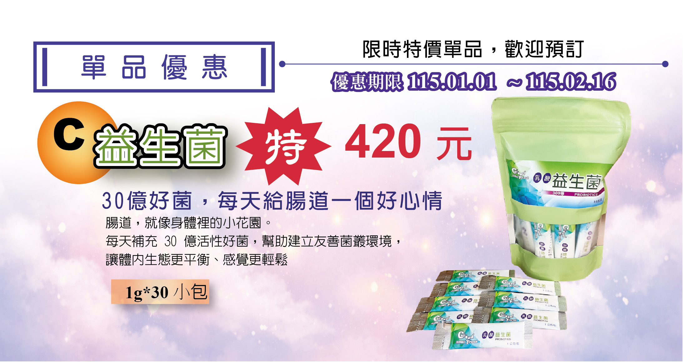 30公克(1g/1小包;30小包/1袋)